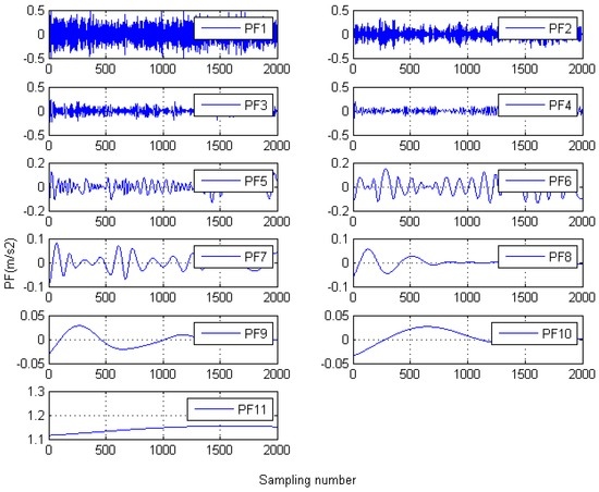 Figure 8, PF1 is classified as a noise component (C1), PF2 to PF5 are classified as the mixed component (C2) and PF6 to PF11 are classified as the useful component (C3).