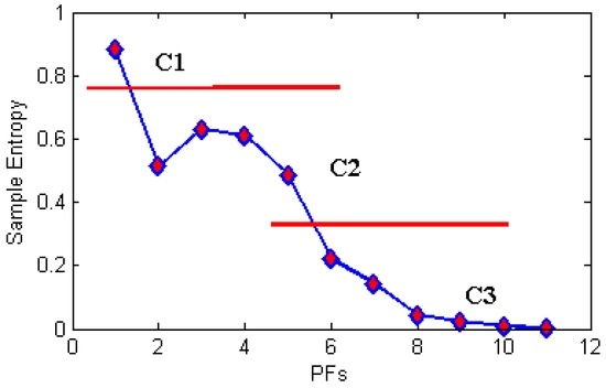 16], each PF would be filtered. Obviously, the computation cost would be increased greatly. In our study, sample entropy is introduced to calculate the similarity of PFs, and the PFs with strong similarity would be classified into one component.