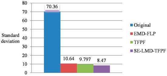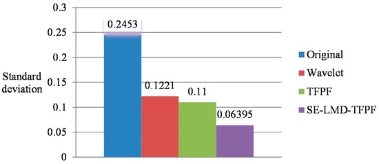 Figure 11 shows the comparison results which prove that the proposed SE-LMD-TFPF has the best de-noising results with the lowest standard deviation.