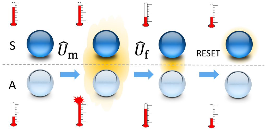 - Fernandez, J.M.; Lloyd, S.; Mor, T.; Roychowdhury, V. Algorithmic cooling of spins: A practicable method for increasing polarization. Int. J. Quantum Inf. 2004, 2, 461–477. [Google Scholar] [CrossRef]