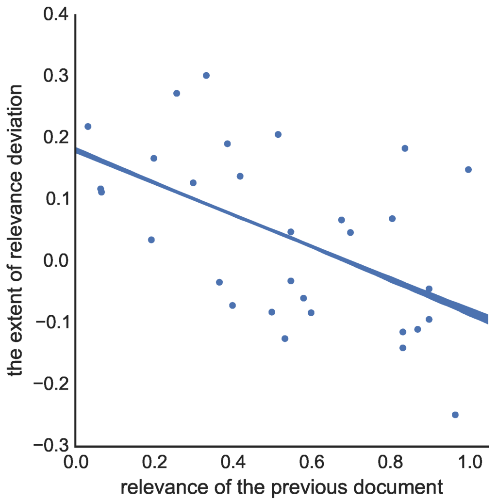 Relevance can be defined as “a dynamic concept that depends on users’ judgements of the quality of the relationship between information and information need at a certain point in time” [,]. Although the dynamic nature of relevance has been widely accepted, relatively few works try to model and explain the dynamic process of judging ordered documents in a cognitive interference perspective.