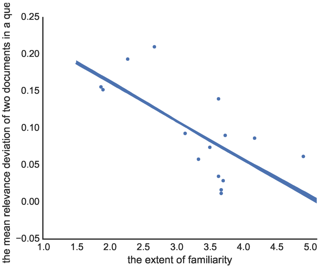 After all 15 trials, we conducted a questionnaire survey to investigate their familiarity degree on these topics. Participants need to rate 15 query-document pairs. The familiarity degrees range from one to five, where the rating of one means they know nothing about the topics of the query and documents, while the rating of five means they are very familiar with those topics.
