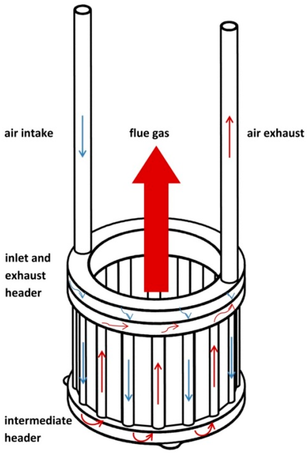 with and the exergy fluxes of the intake and exhaust flue gas of the heat exchanger Ha respectively, and the exergy fluxes of the intake and exhaust air of the heat exchanger Ha, respectively: