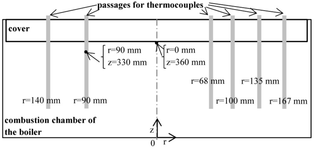 Locations of S-type thermocouples in the combustion chamber (measurement of flue gas temperature).