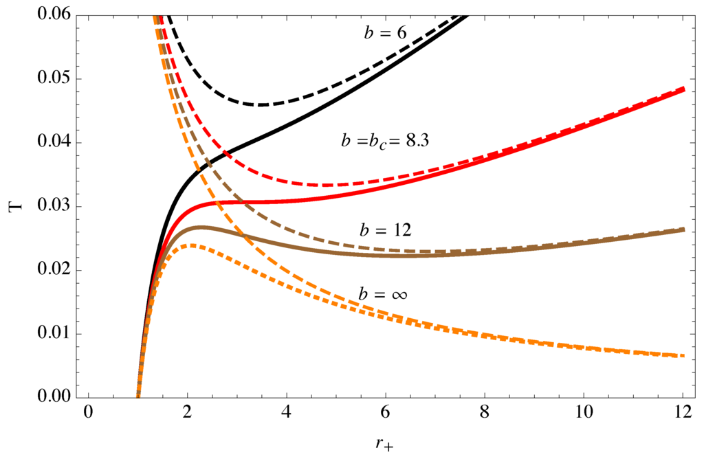 and one can check that for , , the above temperature matches the standard Schwarzschild-AdS temperature. To obtain the extremal configuration we need to couple Equation (35) with the equation , i.e.,