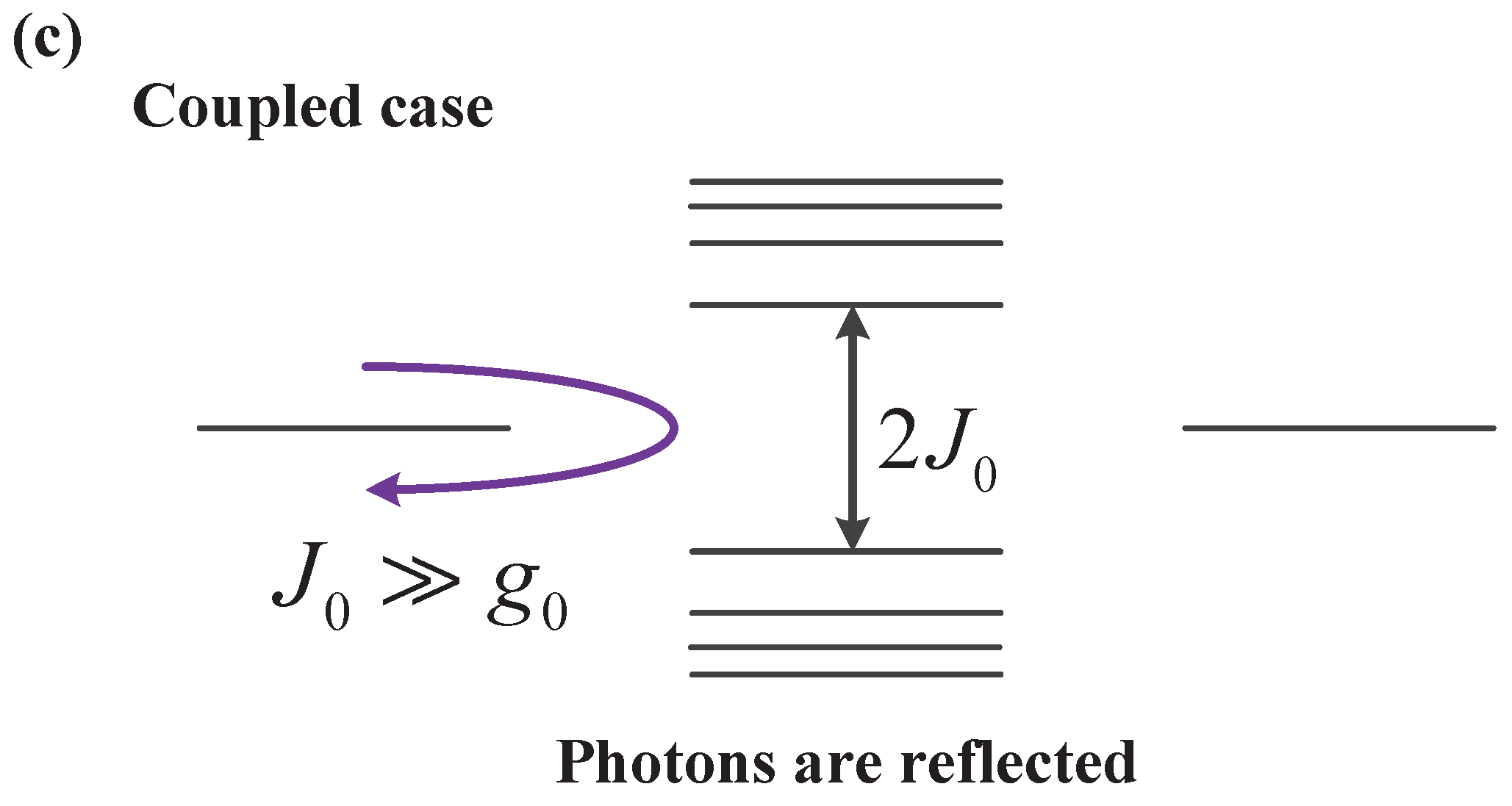 In the uncoupled case when , according to Equation (12), the finial state for time τ is , which means that all photons are simultaneously transported from the left resonator to the right resonator as desired. In contrast, in the coupled case of , the finial state becomes according to Equation (14), thus these photons are reflected back, remaining unchanged.