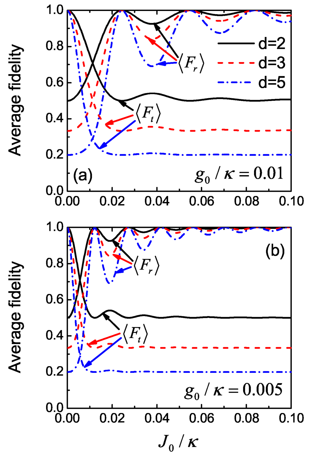 We now consider the quantum information leakage. Specifically, we use an average transmission infidelity for the uncoupled case, and an average reflection infidelity for the coupled case, to quantify the quantum information leakage. It follows, on combining Equations (22), (45) and (A7), that the average transmission infidelity is