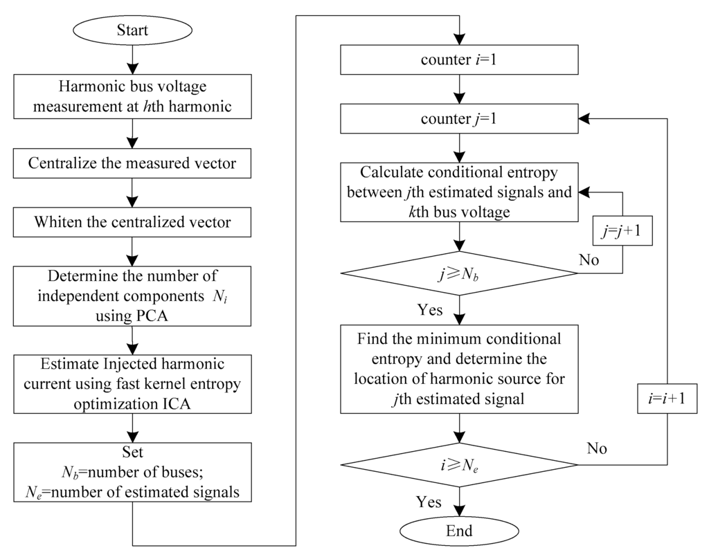 The process of the harmonic source localization based on FKEO-ICA and minimum conditional entropy is as follows: