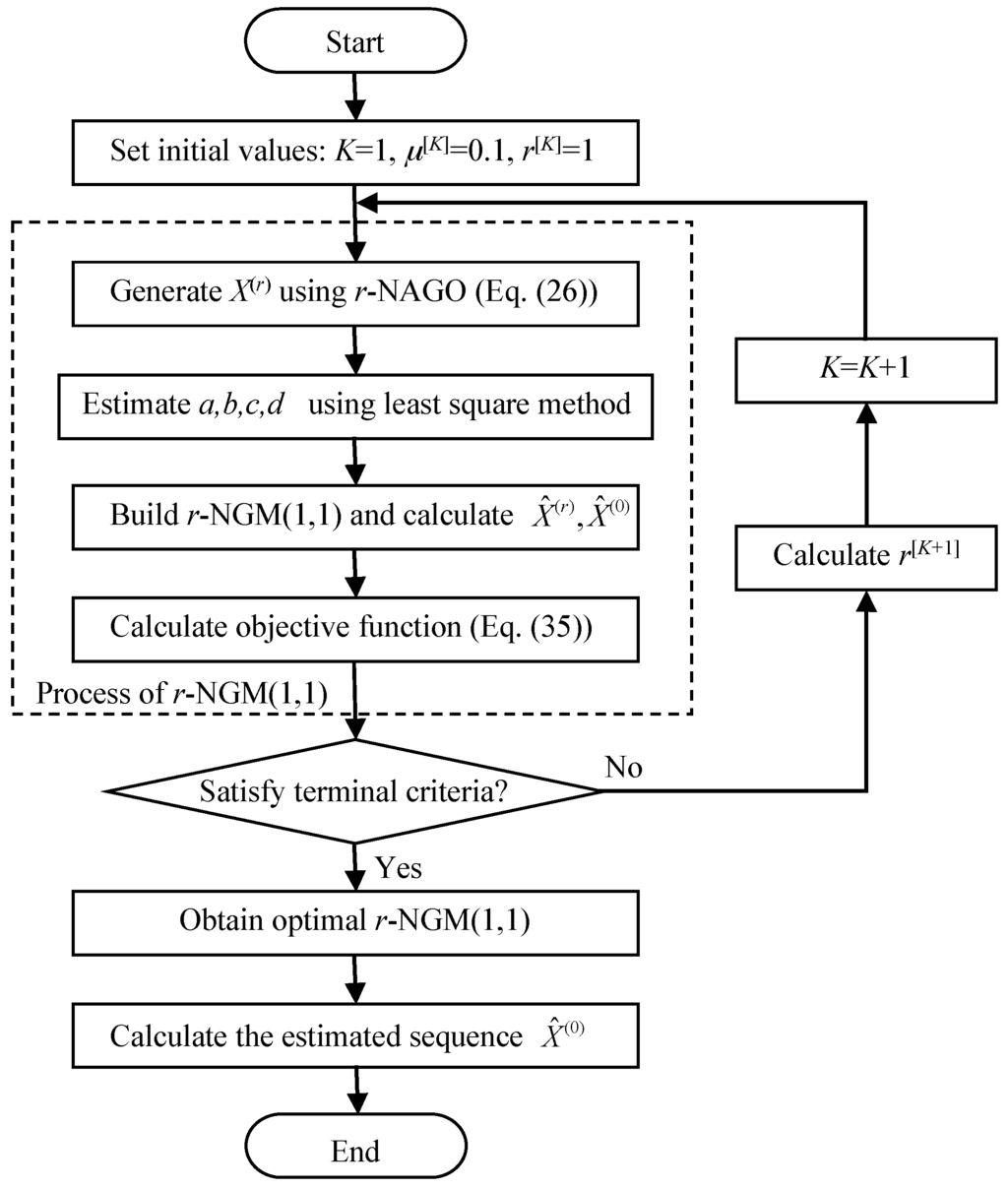 Thus, the whole procedure of the optimal r-NGM(1,1) is described in Figure 3.