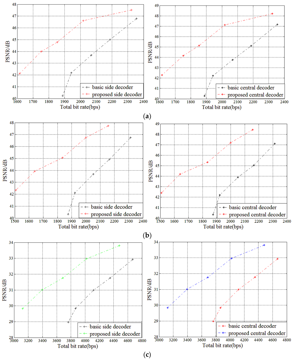 increases, both side and central distortion will increase. On the other hand, the bit rates associated with side and central distortion will decrease with the increase of
