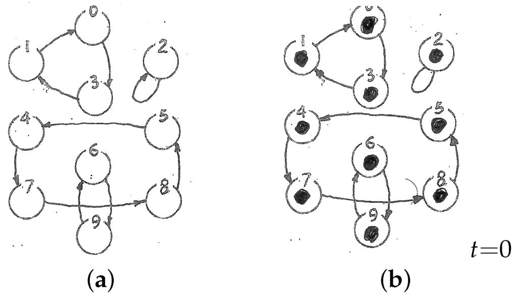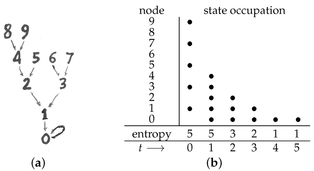 We could have easily added a third column to Table 1 to account for formally nondeterministic dynamical systems. However, while its contribution to the top row (internal entropy budget) would have been “”, and thus different from the “” of the second column (invertible), the total would have been the same for both columns. Thus a third column for one-to-many laws wouldn’t have introduced a very informative distinction: internal nondeterminism and external noise are hard to tease apart in theory as well as in practice.
