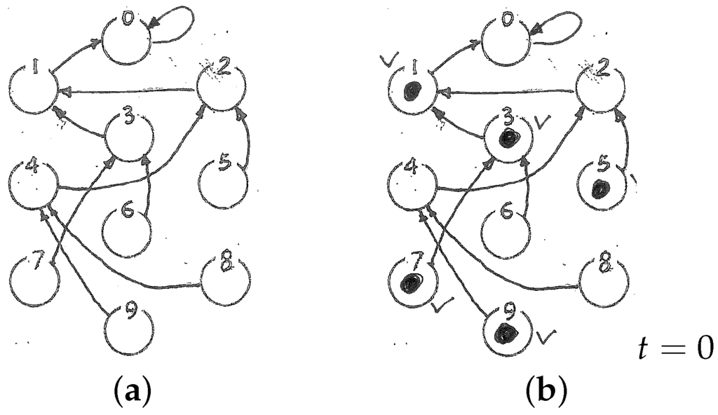 Let us take a more flexible approach. Consider the collection P of all Python programs consisting of no more than two hundred characters and such that at each press of a button each of these program will output (say, within a thousand machine cycles) a single binary digit. Let the programs in this well-defined collection be sequentially numbered , where of course N is a hyper-astronomical number. Let us run all these programs in parallel, and collect into one set the N binary digits generated by one button press, each digit tagged by the number n of the program it came from. Approximately half of those digits will be 0’s and the other half 1’s. Now just ignore the tags, and you will have a multiset with just two outcomes, 0 and 1, one being present in () copies and the other in () copies. We offer this deterministic piece of machinery as a model of a (non-deterministic) coin-tossing machine. To model coins with different biases, just tinker with this collection P of program by throwing out of it a number of its elements. Unless you know well what you are doing, you will have a hard time getting out of the decimated collection an expected value other than one close to some special value such as 0, 1/2, or 1—just as with an ordinary coin (have you tried to machine a coin that will reliably give heads 3.14% of the time?). Of course, by running this astronomical number of programs one-by-one and selectively discarding a fraction of them according to whether their output is 0 or 1, you can “easily” make this coin tosser come up with any probability in between—or behave deterministically for you while still remaining random for the noninitiated. Physical situations of this kind are wonderfully discussed in Jaynes’s book [].