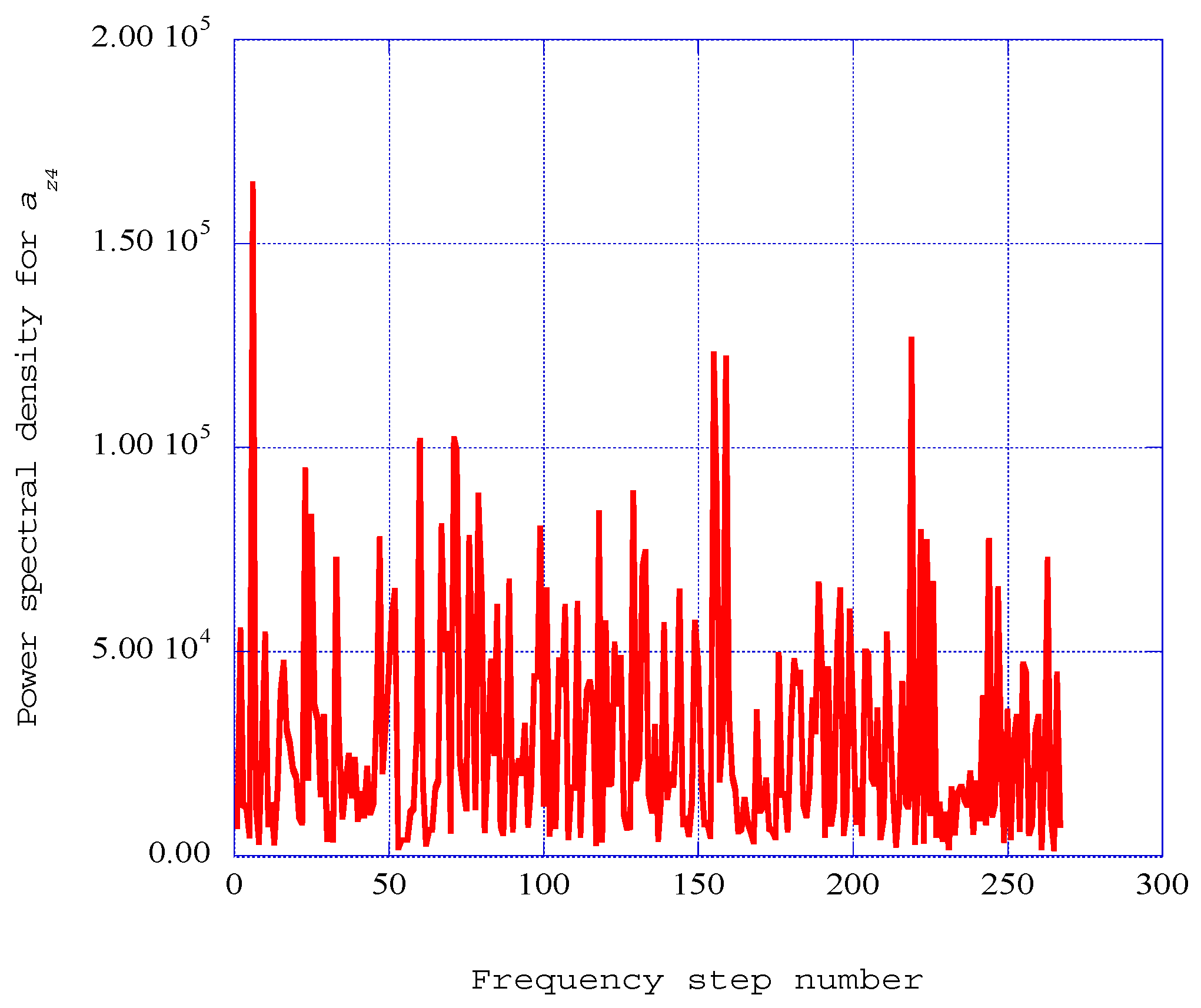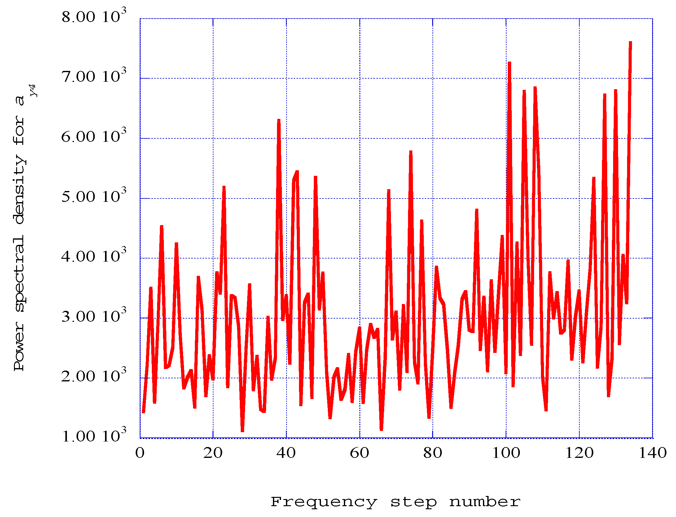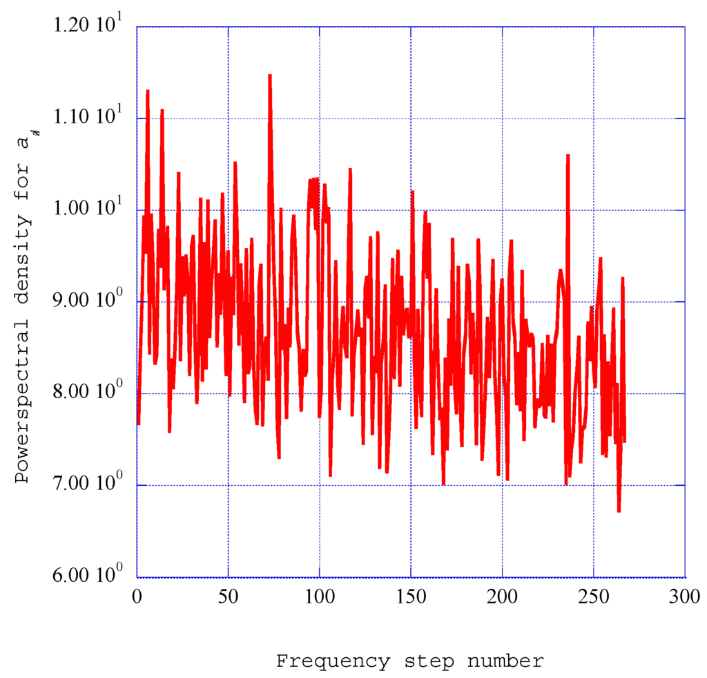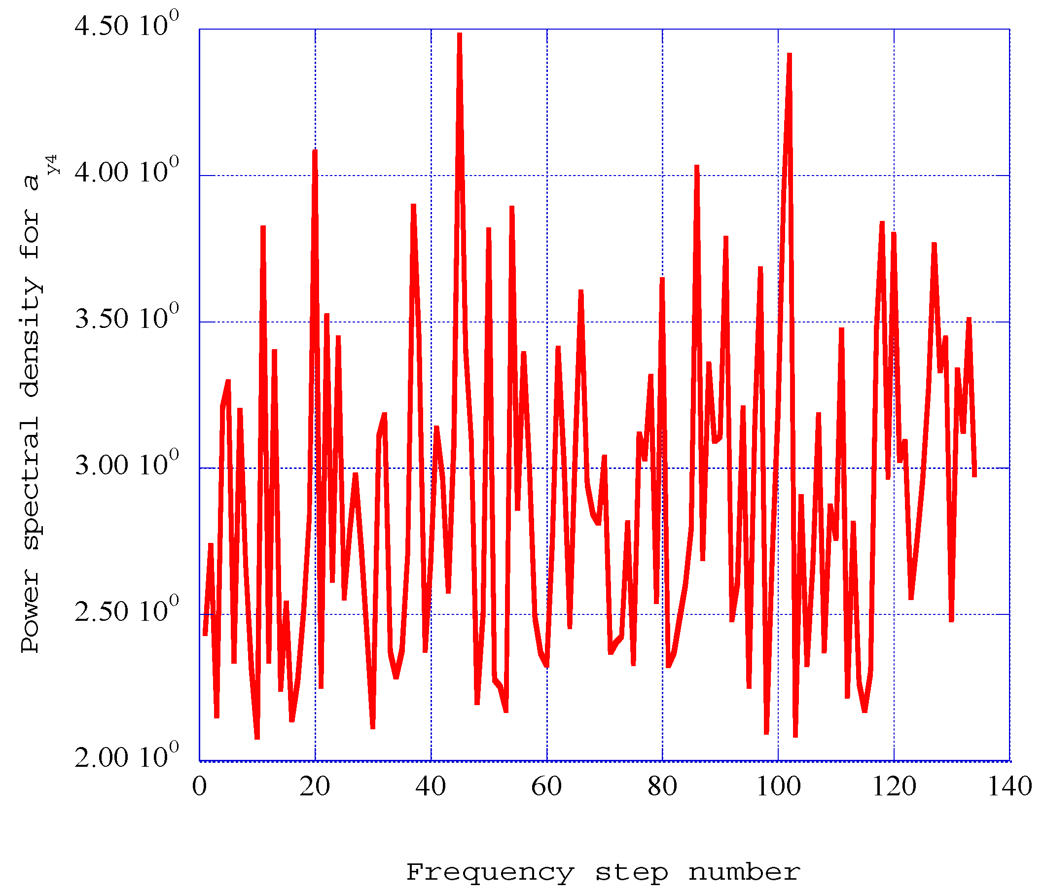 The resulting power spectral density results for the span wise spectral velocity wave component, ay4 at the fourth station at x = 0.140, are presented in Figure 7.