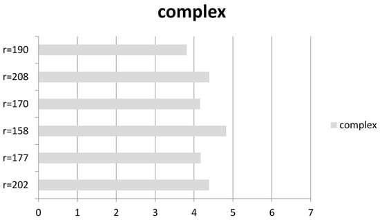 Entropy values (i) for six data sets visually classified as “complex”; 3.8 > i > 4.9.