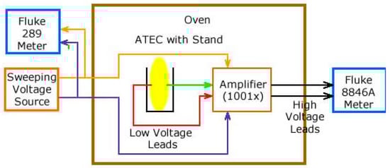 Figure 5 is the top-level view of the test apparatus. It shows the source of sweep voltage and the measurement of net voltage (sweep voltage plus any contribution by the ATEC) across the ATEC.