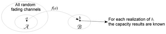 We formulate the problem as finding the tuple such that the capacity results in the subset are solvable, where is a subset of the tuples of all random channels with a nice property, i.e., there exists a mapping f from to . Figure 3 illustrates the problem formulation. Note that for each realization of b, the capacity region is provable.