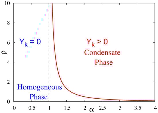 A phase diagram in the -plane summarizing the results of this section for the case of constrained condensation with extensive mass is shown in Figure 1.