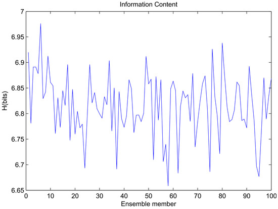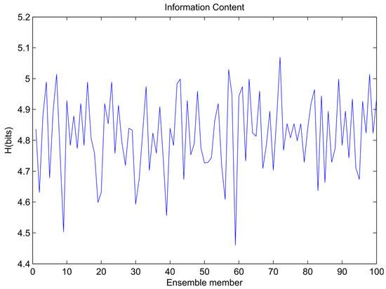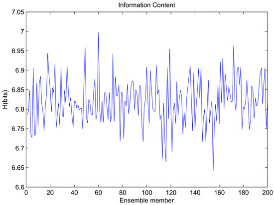 The variations of information content for each ensemble member training data set for the sinusoidal signal, sawtooth wave, and composite signal are shown in Figure 4, Figure 5 and Figure 6, respectively. In the figures it is visible that the bootstrapping leads to significant variability in the training dataset entropies.