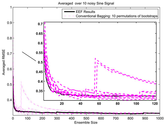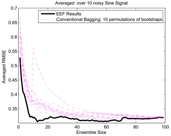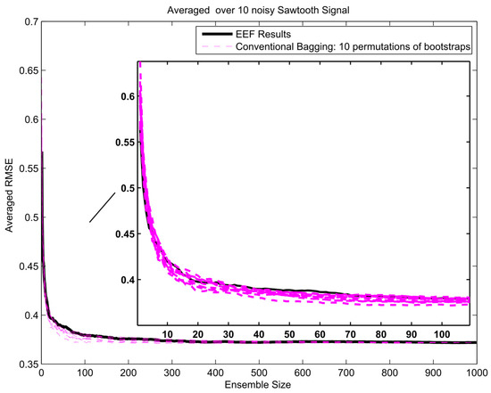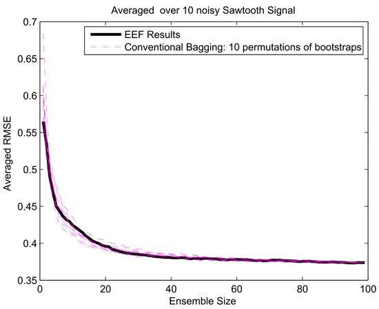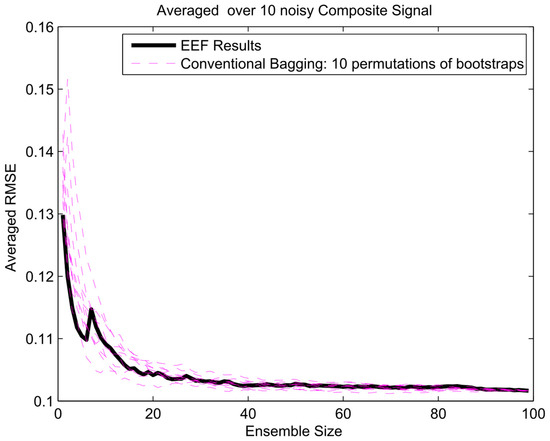 The RMSE of the ensemble average in Equation (8) shown for the EEF method is calculated with respect to the original target signals y (Equations (2)–(4)).
