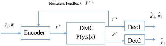 - Yin, X.; Xue, Z.; Dai, B. Capacity-equivocation regions of the DMBCs with noiseless feedback. Math. Probl. Eng. 2013, 2013, 102069. [Google Scholar] [CrossRef]