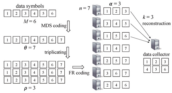 - Rashmi, K.V.; Shah, N.B.; Kumar, P.V. Optimal exact-regenerating codes for distributed storage at the MSR and MBR points via a product-matrix construction. IEEE Trans. Inf. Theory 2011, 57, 5227–5239. [Google Scholar] [CrossRef]