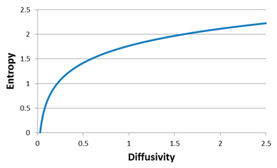 Schematic representation of Equation (3): Entropy versus diffusivity in a time lag of 1 s (matching our experimental frequency range).