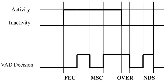 Freeman et al. proposed a set of metrics in [36], which are widely used to evaluate the performance of the voice activity detector [1,25,37]. Specifically, the five metrics are illustrated in Figure 11 and defined thereafter.