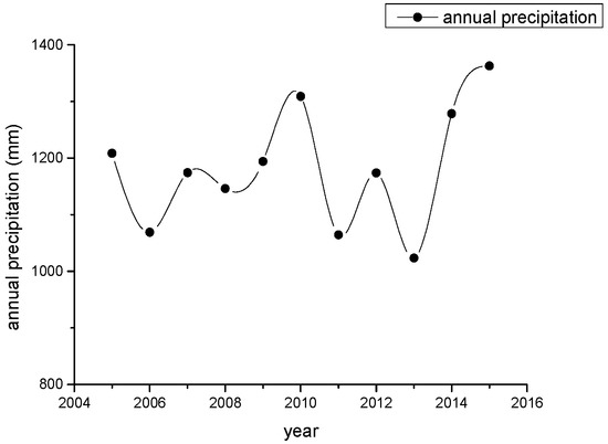 Annual variation curve of precipitation in Anhui Province (2005–2015).