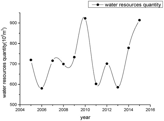 Annual variation curve of water resources in Anhui Province (2005–2015).