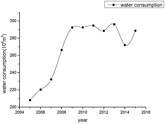 Annual variation curve of water consumption in Anhui Province (2005–2015).