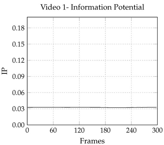 The methodology used in the tests was based on the analysis of information dynamics using videos as examples of dynamic environments. As seen in Section 2, there are several descriptors in information theory that measure the information of a given random variable and therefore could be used to compose the vector in this work. For convenience, we will consider that is one-dimensional and we will choose the information potential () as our measure of information hereafter. For simplicity, we will call , .
