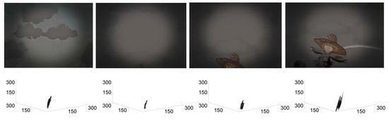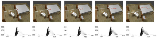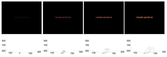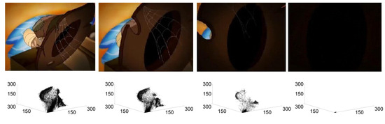Note that the IP values are practically constant over time. This behavior was already expected because, as previously mentioned, the information potential of each time slot is calculated as a function of RGB values found in each pixel of the frame, which do not change with time. Figure 6 shows a sequence of video frames with their respective RGB clouds.