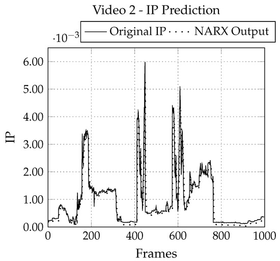The output of the NARX-NN, after training, will present a prediction of the next IP value in function of its past values, proving the presence of information dynamics in the video over time. The results obtained from the experiments are presented in Section 4.