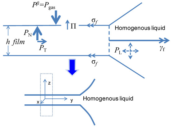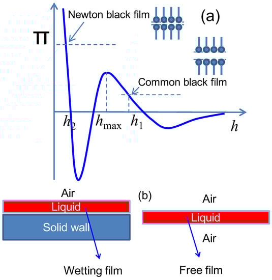 - Radke, C.J. Film and membrane-model thermodynamics of free thin liquid films. J. Colloid Interface Sci. 2015, 449, 462–479. [Google Scholar] [CrossRef] [PubMed]