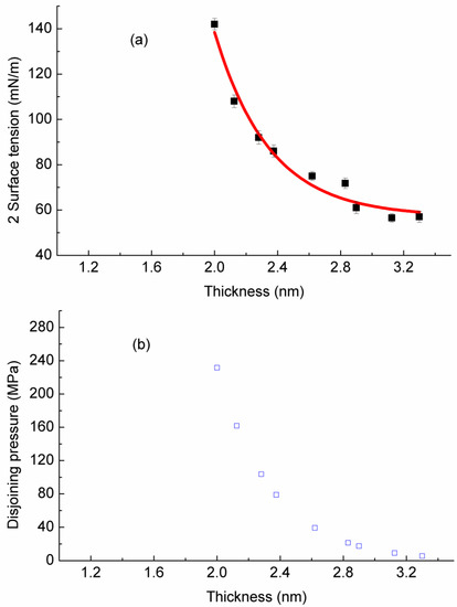 - Peng, T.; Firouzi, M.; Li, Q.; Peng, K. Surface force at the nano-scale: Observation of non-monotonic surface tension and disjoining pressure. Phys. Chem. Chem. Phys. 2015, 17, 20502–20507. [Google Scholar] [CrossRef] [PubMed]