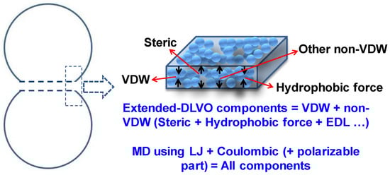- Ninham, B. On progress in forces since the DLVO theory. Adv. Colloid Interface 1999, 83, 1–17. [Google Scholar] [CrossRef]