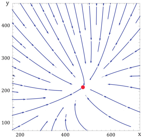 In order to acquire more information about system stability, in Figure 6 a plot of the velocity vector field is presented which is consistent with the relaxation times (Figure 5) obtained with the approximate analysis using the linearization technique. Although parameter values would be changed, the qualitative features are maintained.