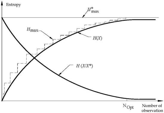 The maximum amount of information gained about the process X defined within the interval [a, b] is Hmax. Thus, the expression in Equation (16) will assume negative values. However, since H(X/X*) describes entropy as the variation of information, it is possible to consider the absolute value of this measure.