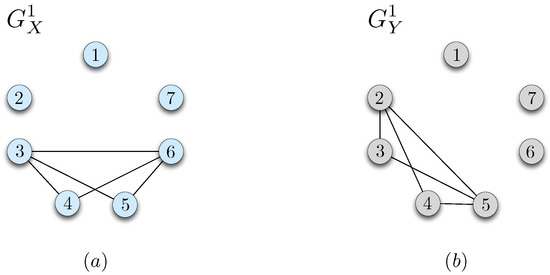 Figure 3. Characteristic graphs (a) G X 1 and (b) G Y 1 constructed using distribution p 2 ( x , y ) in Equation (20) and function f ( x , y ) in Equation (19).