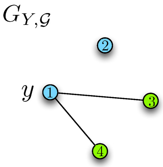 As described in the beginning of Section 2.1, one can represent the structure of these distributions and the corresponding function values via bipartite graphs. Such a bipartite graph for the probability distribution p 2 ( x , y ) in Equation (20) is given in Figure 2.