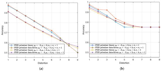 Let denote a PDD mechanism. Since X, Y, and are binary random variables, the mechanism can be represented by the conditional distribution that maps the public and private variable pair to an output given by