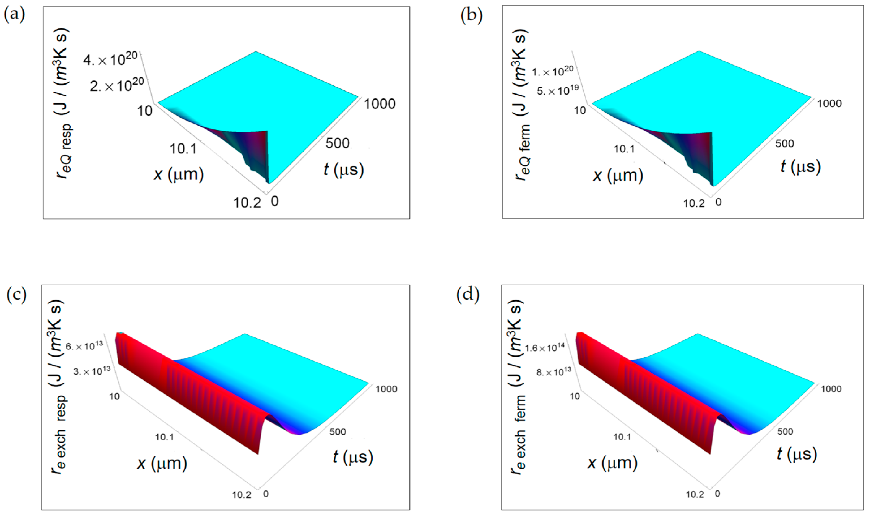 3.2. Rate of Entropy Density Production for Lactic Fermentation and Respiration Processes: Numerical Results