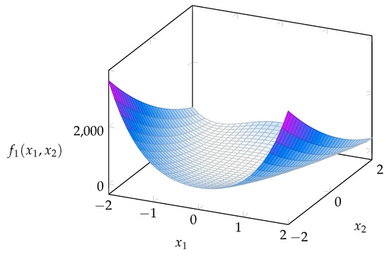 Rendering of the generalized Rosenbrock function (benchmark function “F1”) for the case of independent variables.