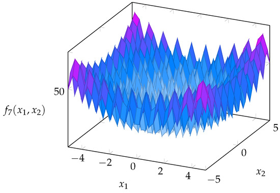 Rendering of the Rastring function (benchmark function “F7”) for the case of independent variables.