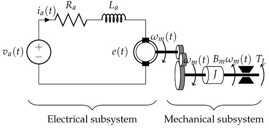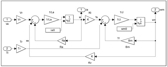 An electro-mechanical model of the direct-current electrical motor (we assumed no angular speed change after gear).