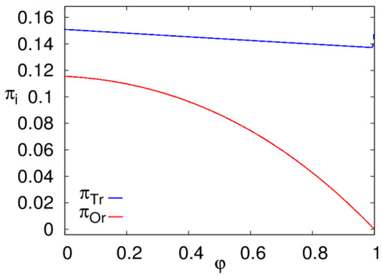 The parameters in Equation (7) represent the two retailers’ adjustment speed in each supply chain, respectively. The values of the adjustment speed () depend on the enthusiasm of the retailer’s pursuit of profit, and their ability to regulate and control the sales. The retailer who has a strong drive to increase profits can take a bigger adjustment parameter and needs to have a stronger ability to regulate and control his sales.