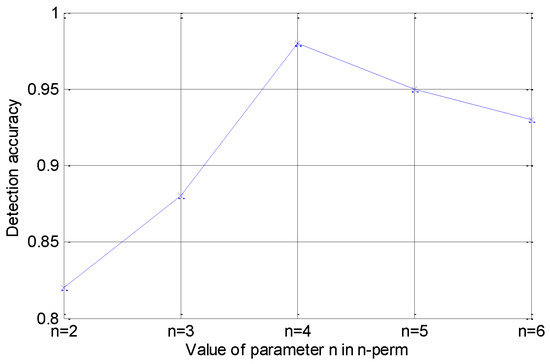 In the N-perm algorithm, selecting a suitable N is essential. The smaller the N value, the less sufficient the extracted characteristic information. The bigger the N value, the less representative the extracted features. In this paper, the N value is set as 4. The experiments of different N value selections are shown in Figure 6.