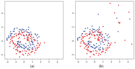 - Takeda, A.; Mitsugi, H.; Kanamori, T. A Unified Robust Classification Model. In Proceedings of the 29th International Conference on Machine Learning (ICML-12), ICML’12, Edinburgh, Scotland, 26 June–1 July 2012; Langford, J., Pineau, J., Eds.; Omnipress: New York, NY, USA, 2012; pp. 129–136. [Google Scholar]