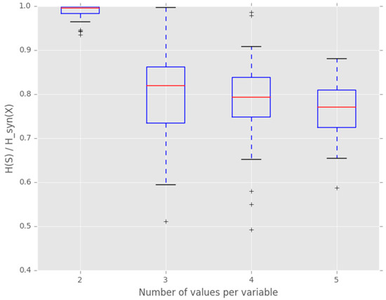 Here, denotes the cardinality of set which is minimized. Intuitively, one could imagine building by iteratively removing an SRV from in case it is completely redundant given another SRV , i.e., if . The result is a set with the same informational content (entropy) as since only redundant variables are discarded. In case multiple candidates for would exist then any candidate among them will induce the same synergy quantity in our proposed measure, as will be clear from the definition in Section 2.2.5 and further proven in Appendix A.2 and Appendix A.3.