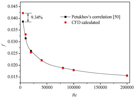Validation of CFD calculated friction factor with Petukhov’s correlation [50].